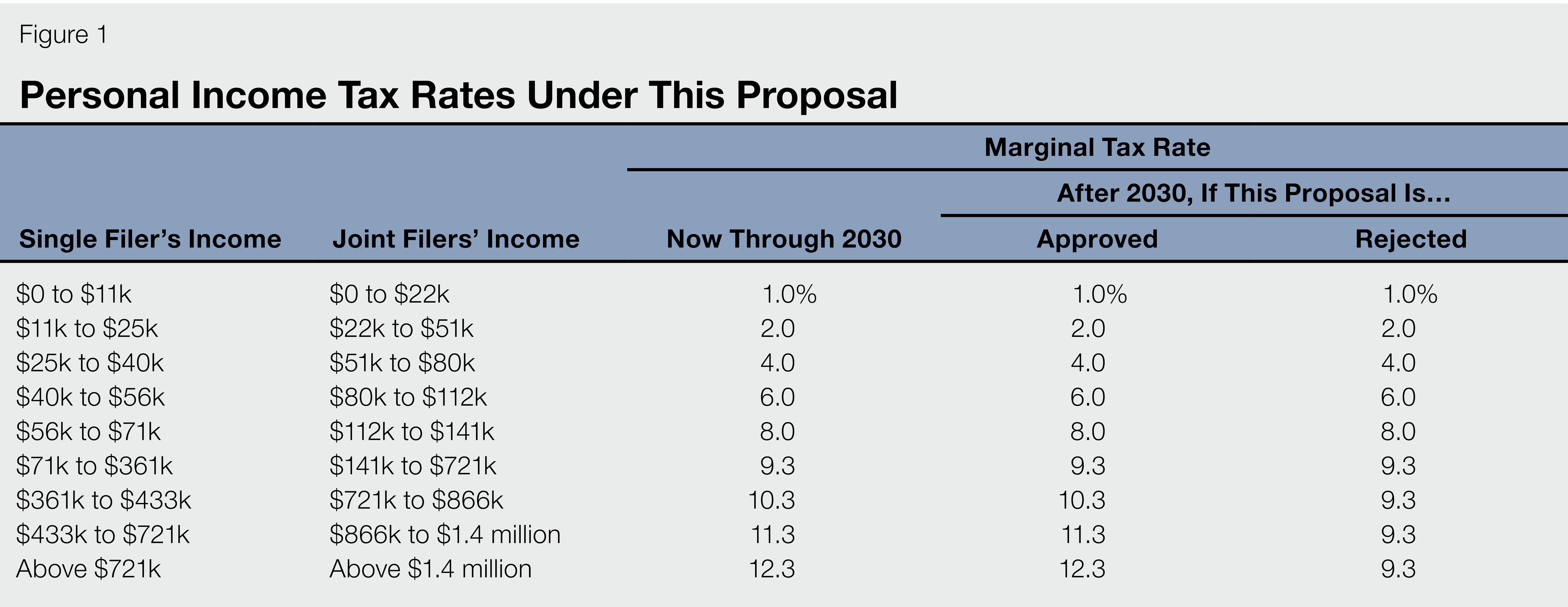 This measure maintains the higher income tax rates established by Proposition 30 by making them permanent instead of letting them expire in 2031. Figure 1 shows what income tax rates would be if this measure passes and what they would be if it is rejected.